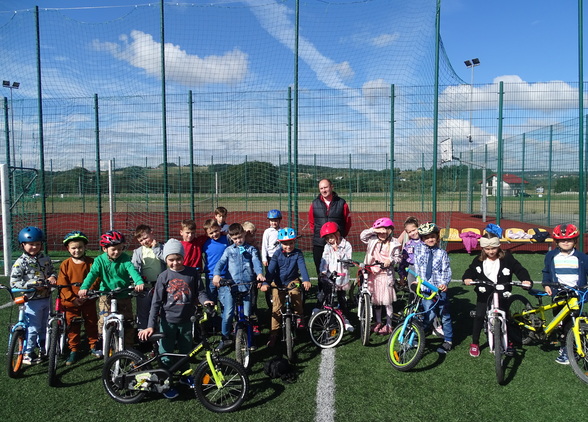 Uczniowie klasy I, II i III podczas zajęć we wrześniu uczyli się i doskonalili swoje umiejętności jeżdżenia na rowerze. Po zakończeniu zajęć uczniowie otrzymają sprawność rowerzysty.