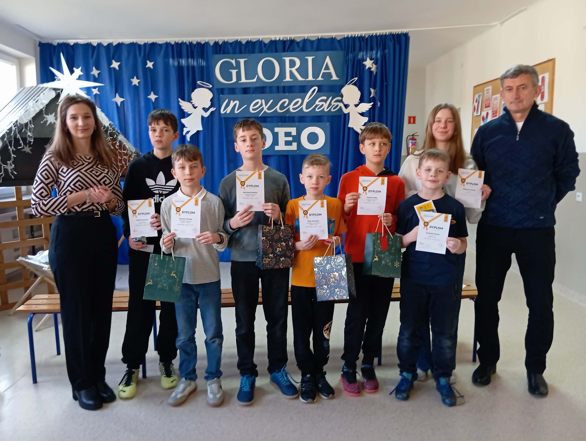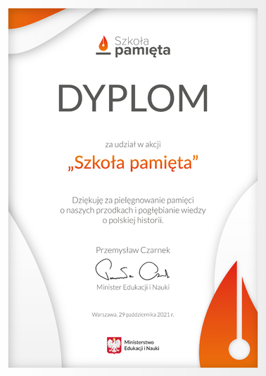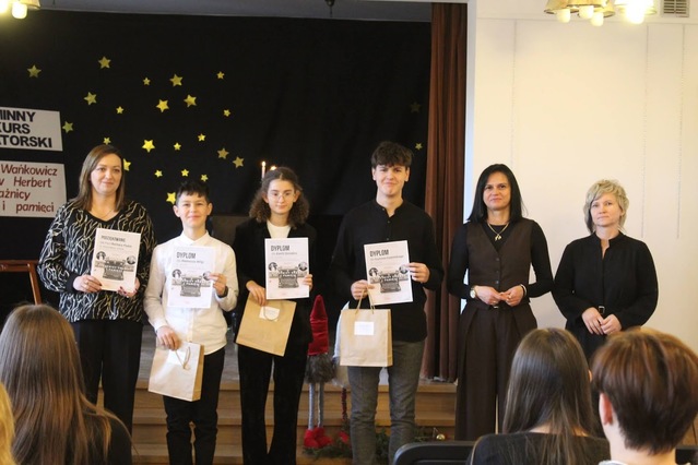 Gratulujemy uczniom, którzy wzięli udział w ogólnopolskim konkursie szachowym „Konik szachowy” - edycja jesienna. Duże uznanie należy się Milanowi Olszowskiemu z klasy III. Uzyskał on najwyższy możliwy wynik, zajmując 1 miejsce w Polsce i zdobywając tytuł LAUREATA. Wyróżnieni za ponadprzeciętny wynik zostali: Bartłomiej Zabielny, Dominik Wierzba i Dominik Wilga. Dyplomy za udział otrzymali też: Aleksandra Gucwa, Hubert Szymczyk i Krzysztof Zięcina. Wszystkim uczestnikom konkursu gratulujemy podjęcia próby oraz wysokich wyników