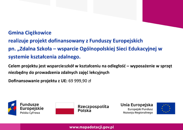 👧🧒 Dzięki wsparciu Funduszy Europejskich wprowadzimy pilotażowy model edukacji włączającej, który zapewni każdemu dziecku warunki do rozwijania indywidualnego potencjału i pełnego uczestnictwa w życiu szkoły. Doświadczenia z pilotażu zostaną w kolejnych latach wykorzystane w pozostałych placówkach Gminy Ciężkowice.