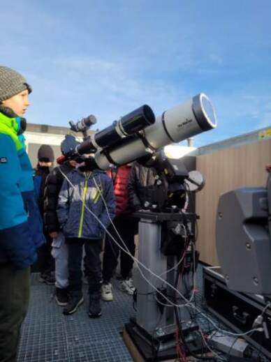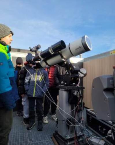 a także rozbudzenie pasji do odkrywania tajemnic Wszechświata. Najważniejszym punktem programu był interaktywny wykład. Uczniowie mieli okazję dowiedzieć się wielu ciekawostek dotyczących planet, lotów kosmicznych i życia astronautów. Pan przewodnik w przystępny sposób wyjaśniał skomplikowane zjawiska, a uczniowie z dużym zainteresowaniem słuchali i zadawali mnóstwo pytań. Piękna pogoda 8 grudnia pozwoliła, aby uczestnicy wycieczki mogli wziąć udział w unikalnej obserwacji Słońca za pomocą nowoczesnego sprzętu, podziwiając jego powierzchnię i plamy.