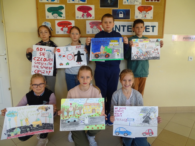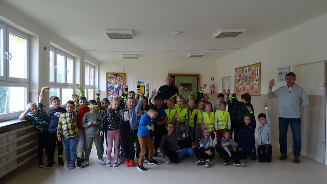 Podobnie jak w poprzedniej edycji, nauczyciele od pierwszych dni września zaczęli realizować liczne działania, mające na celu zwiększenie świadomości dzieci jak ważne jest zachowanie bezpieczeństwa w ruchu drogowym. W pierwszy dzień nauki przeprowadzili w klasach pogadanki na temat bezpiecznego poruszania się po drogach Tradycyjnie na początku września szkołę odwiedził dzielnicowy, który w ciekawy sposób opowiadał dzieciom o zasadach bezpiecznego poruszania się po drogach: pieszo, rowerem oraz w samochodzie. Uświadamiał uczniom konieczność korzystania z kamizelek odblaskowych i noszenia odblasków, gdyż wtedy zwiększa się ich bezpieczeństwo i stają się lepiej widoczni dla kierujących pojazdami. W ramach akcji Odblaskowa Szkoła w naszej szkole prowadzone są różne działania promujące ideę bezpieczeństwa w ruchu drogowym: odblaskowa dyskoteka , odblaskowy marszpo drogach naszej miejscowości z udziałem uczniów i ich rodzin, konkursy plastyczne na temat bezpieczeństwa w ruchu drogowym, plakaty promujące noszenie odblasków, prezentacja multimedialna poświęcona wykorzystaniu elementów odblaskowych w naszych ubiorach, gazetki ścienne oraz inne imprezy promujące bezpieczeństwo uczniów w drodze do i ze szkoły Zwracamy się również do rodziców, aby w trosce o bezpieczeństwo swoich dzieci poparli nasze działania w tym zakresie i wyrobili u swoich pociech nawyk codziennego zakładania kamizelki nie tylko do szkoły, ale zawsze kiedy będą korzystać z drogi czy to pieszo, czy na rowerze.