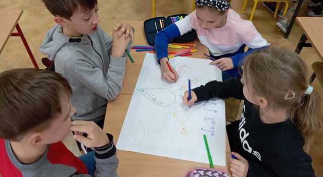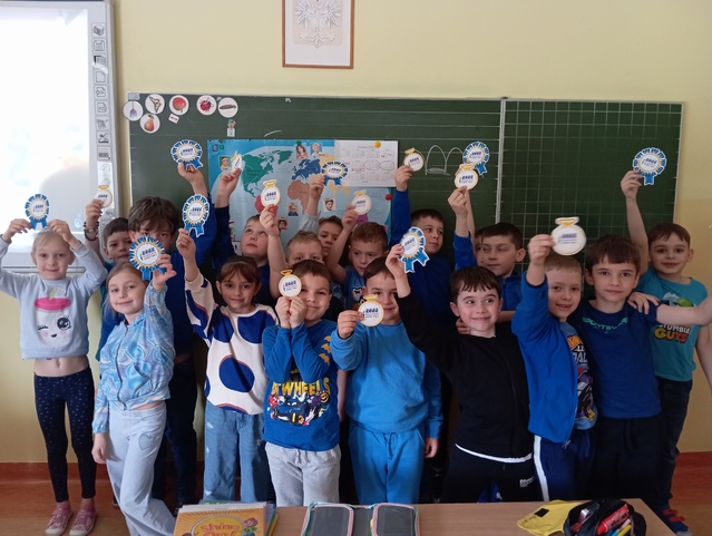 W młodszych klasach także dużo się działo. Uczniowie klas I–III wykonali barwne ilustracje do poznanych legend – każda praca była inna, a wszystkie razem stworzyły piękną galerię, która przez najbliższe dni będzie zdobiła szkolne korytarze.